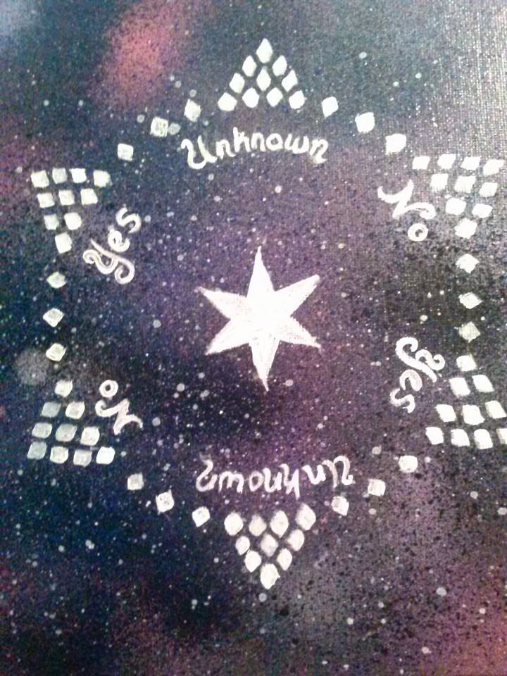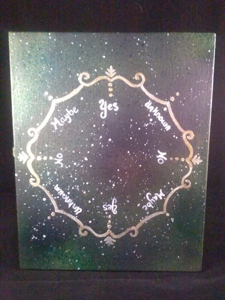 "Asking the Stars" pendulum boards are hand painted 8"x10" canvass boards and perfect for keeping in a safe, convenient spot to be able to pull out at a moment's whim and not have to worry about it being all big and bulky.