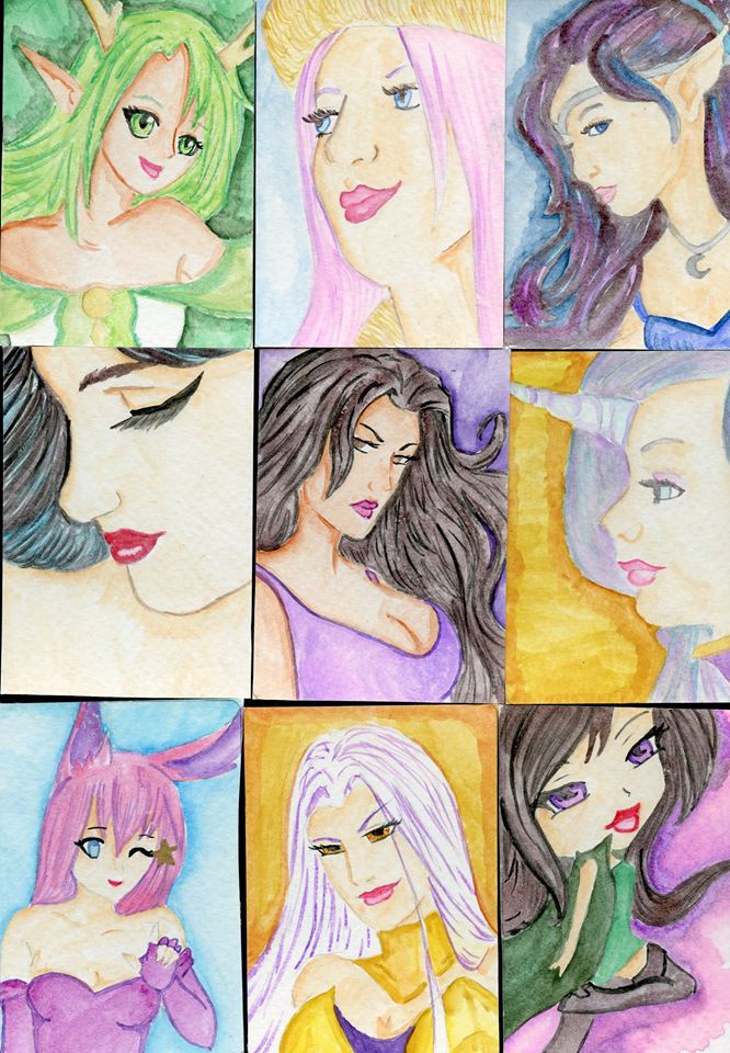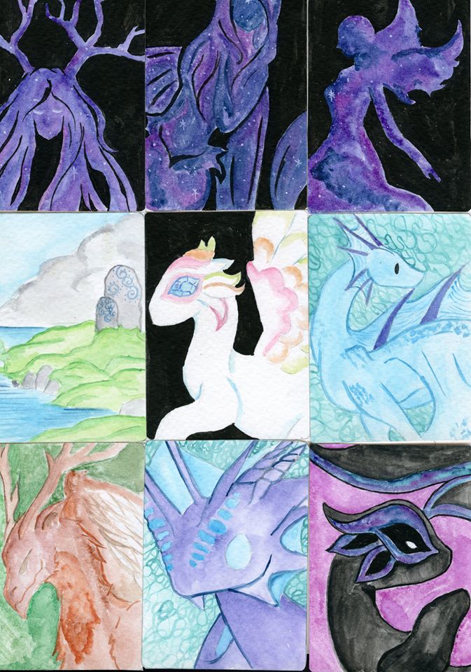 Pencil, Inked, or Watercolor. Each one comes with a protective card sleeve, though the watercolor ones come with a larger, hardened protective sleeve. Watercolor ones also have the option to be made into badges with lanyards