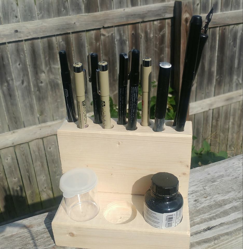They make awesome holders for art supplies! Small ones are perfect for inking supplies as seen in the pictures or for clay tools. Larger ones hold a wide range of paint brushes, and all easy to find.