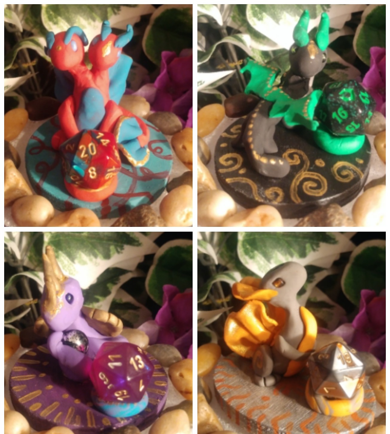No two babies are the same, and each has its own unique personality and quirks. All of these dragons come on their own custom painted base, and they are overall roughly between 2"x2"x3" up to 3"x3"x4"