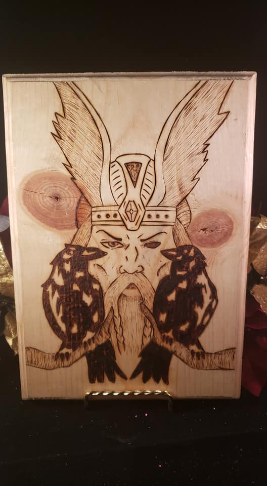 For those who love the Odin's Gaze piece but can't quite afford it~I offer the Allfather's Might. Featuring 0din as well as both Hugin and Mugin. This plaque is roughly 5"x7" overall.