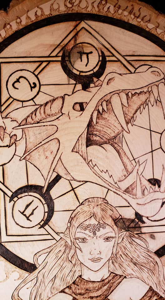Dragon's gate is an 11x14 piece on a natural wood board rather than one of my normal routed ones. This piece in particular is one of my favorites that I have included in the upcoming coloring book, and I loved it enough that when I found this board, I knew exactly what I wanted to do with it.