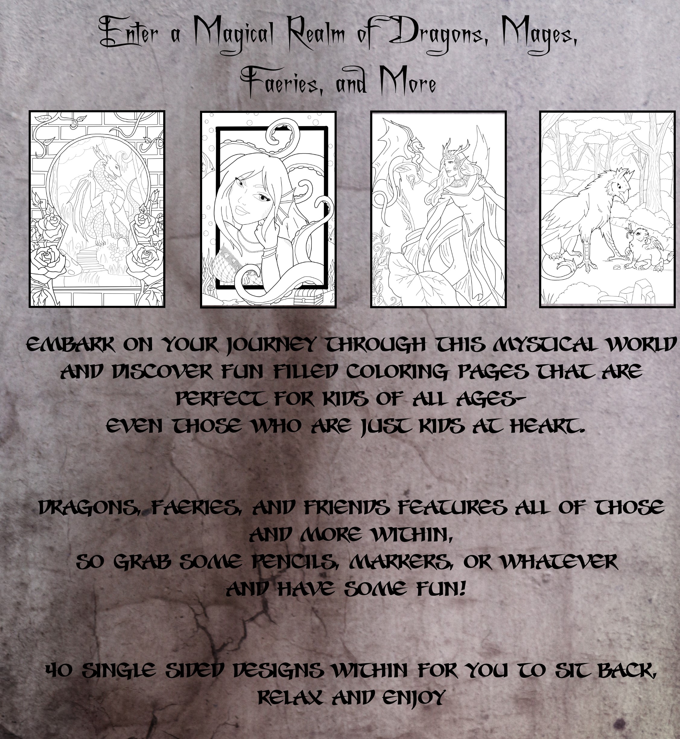 Please note: Dragons, Faeries, and Friends, as well as all images within this book are copyright of Dark Crescent Studio and are NOT licensed for customer reproduction for non-profit, commercial, or monetary gain