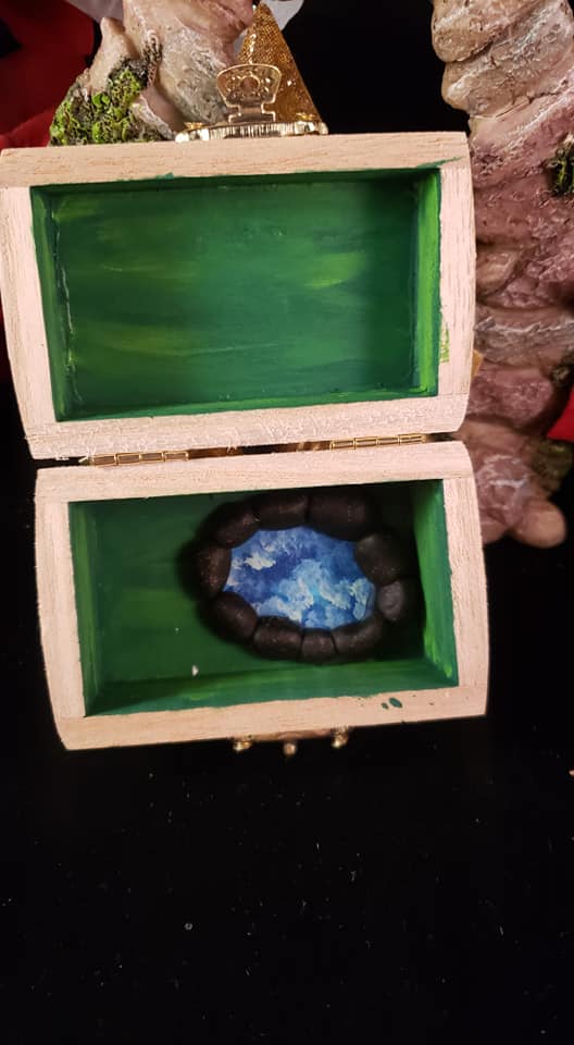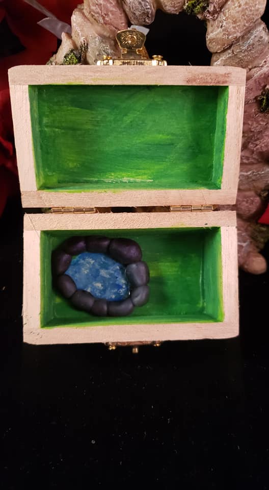Boxes measure: 2x3.5x2 in and each one features a tiny resin rock pond and painted. The tops are all individually burned by hand, and no two boxes overall are alike.