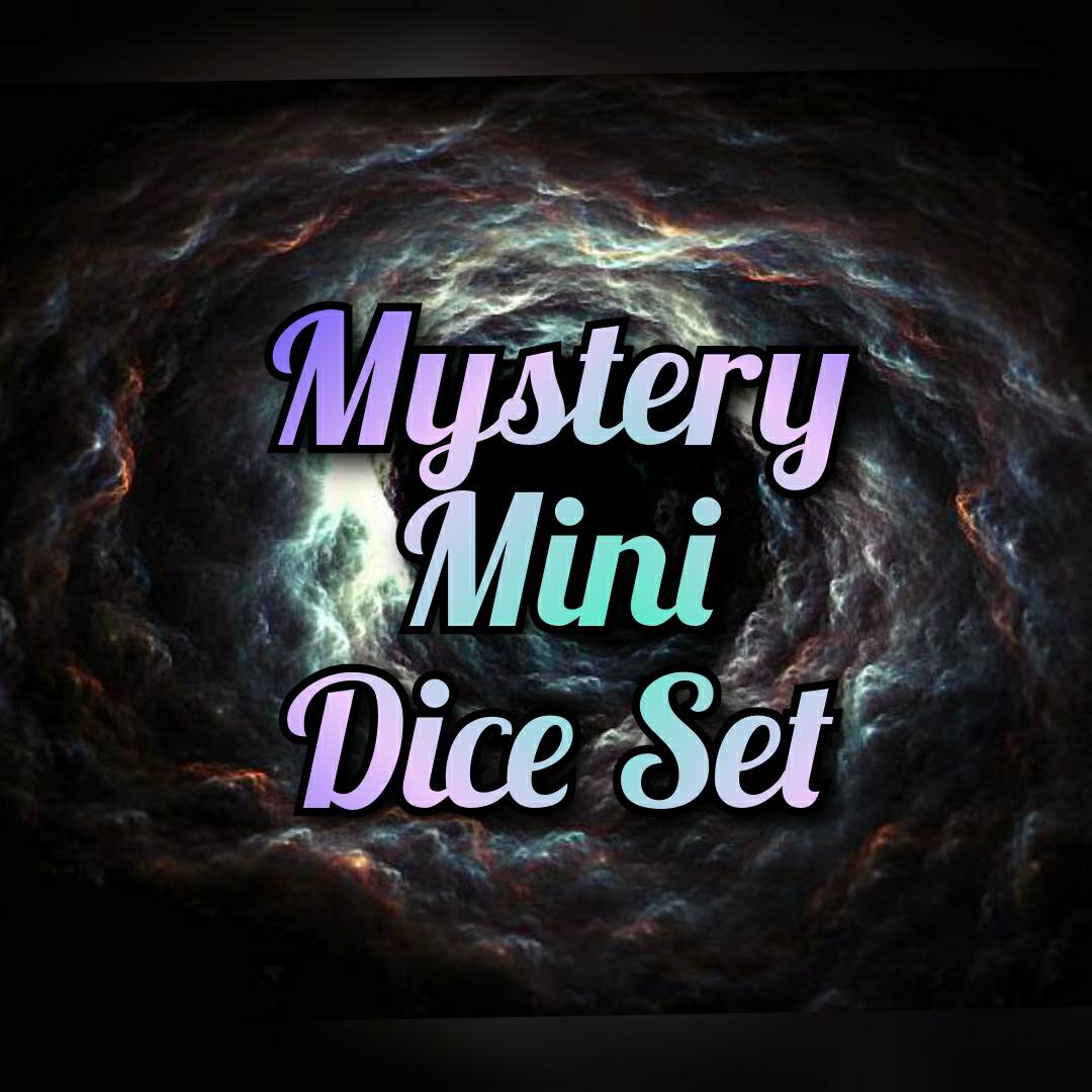 This listing is for a single MYSTERY MINI DICE SET. This blind bag includes a fully finished and inked Mini 7 piece set