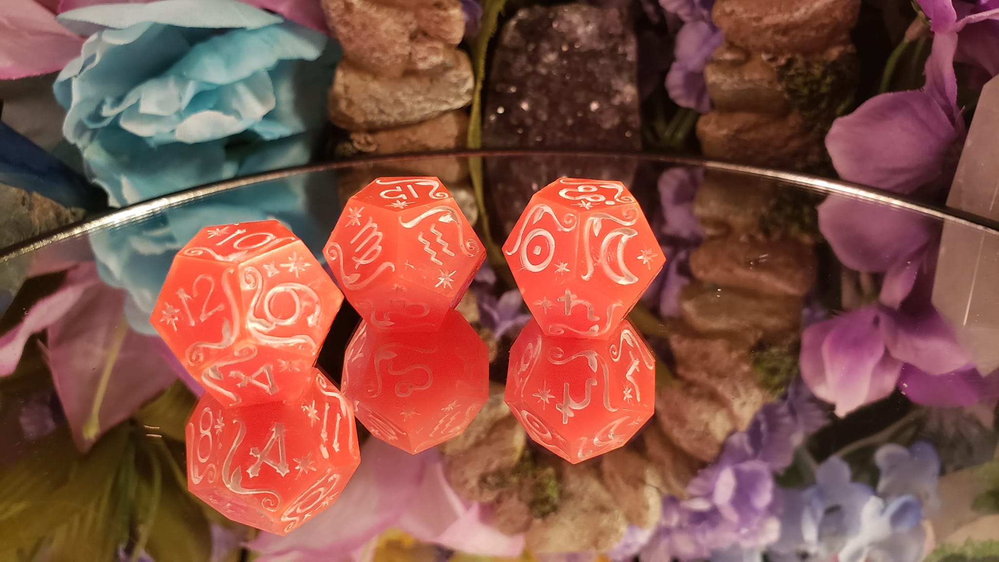 ~*Unlike normal dice, this does not have numbers, but is made with numbers for the houses, signs of the zodiac, and symbols of the planets