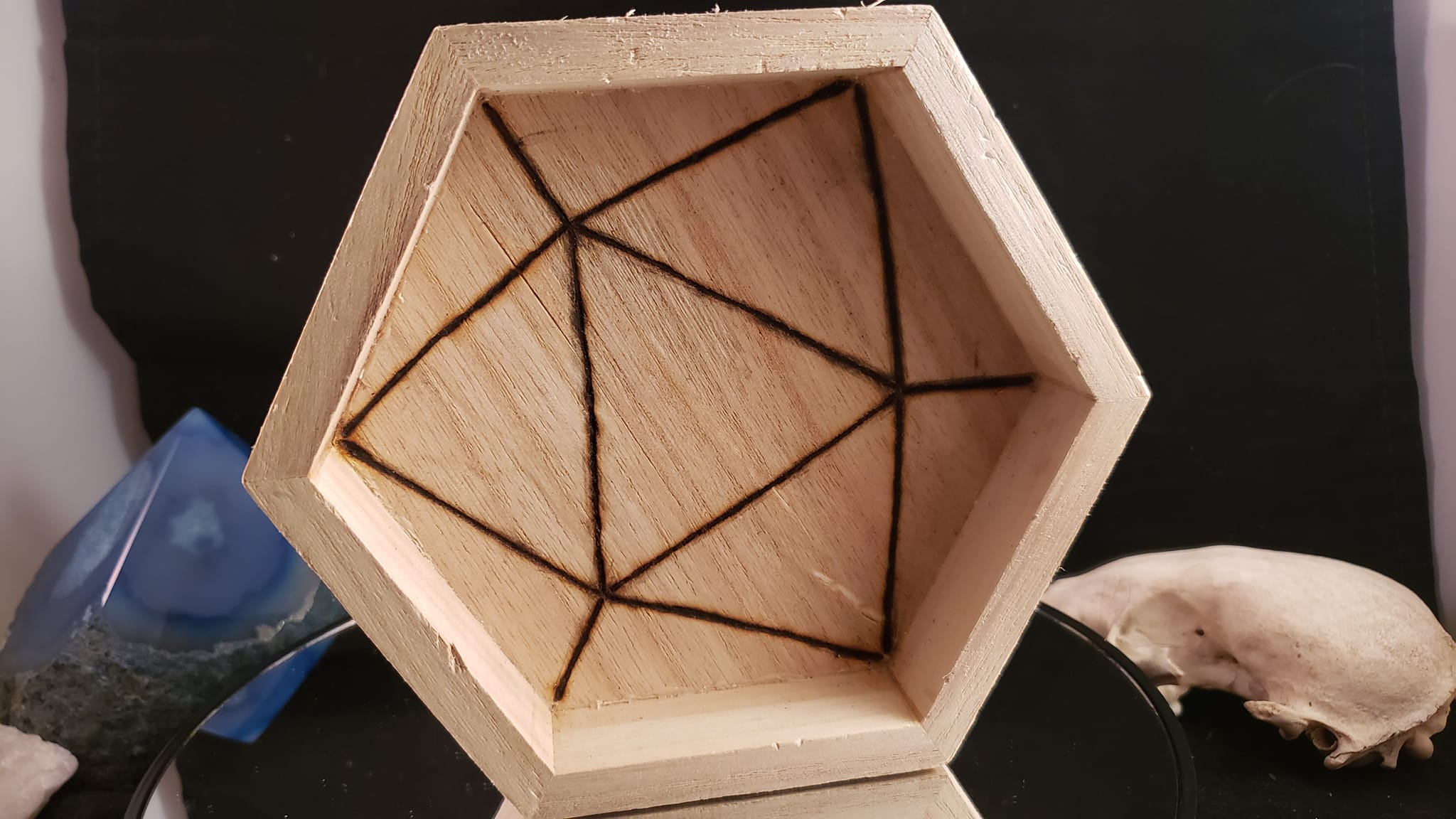 This personal dice tray is perfect for taking on the go and gamers with not a lot of space at your table to roll at. It measures at just over 1.75x6x5 inches overall. Hand burned to bring all kinds of fun to your gaming table