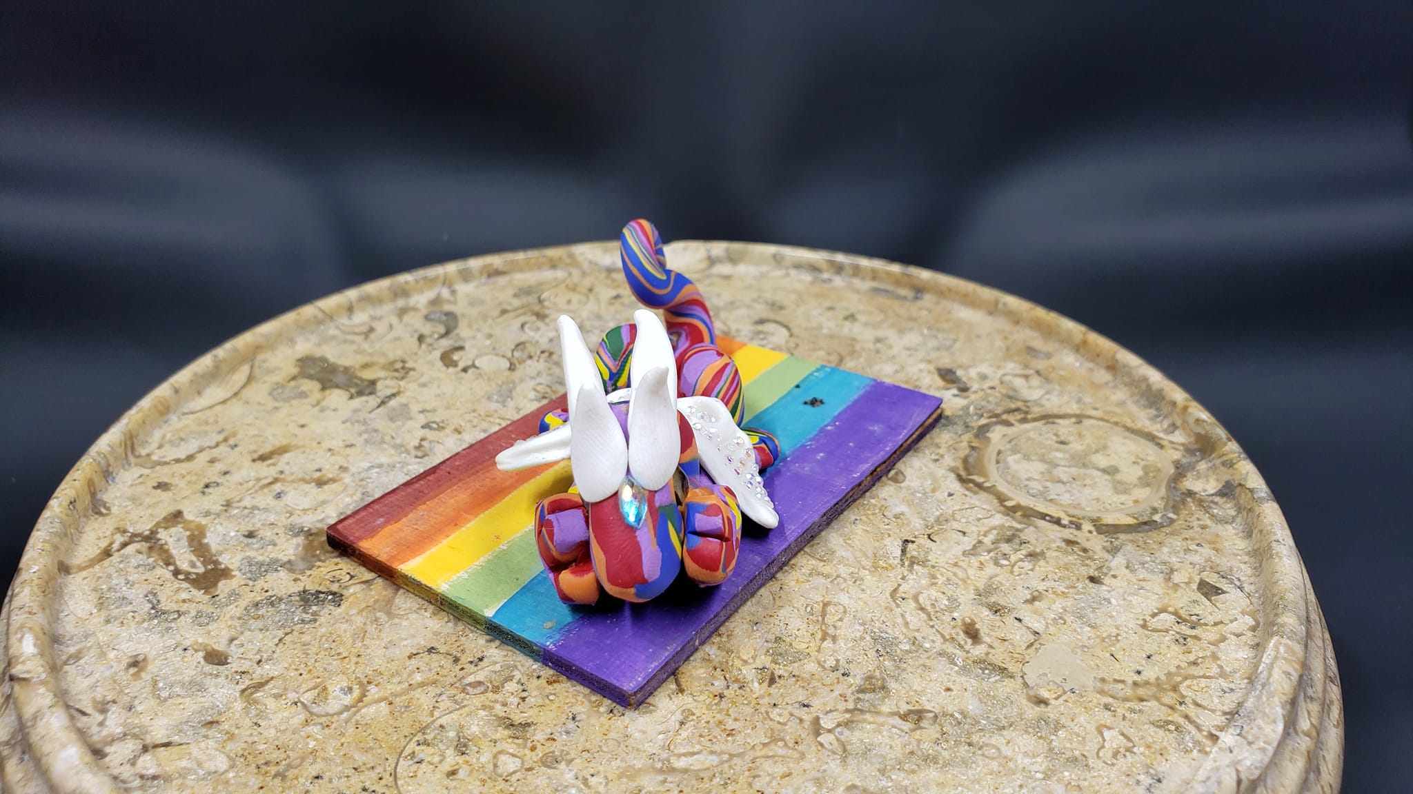 Each Pride Guardian is made to match various pride flags and handmade with love on a 2"x3"base and sits between 1.5"-2.5" tall
