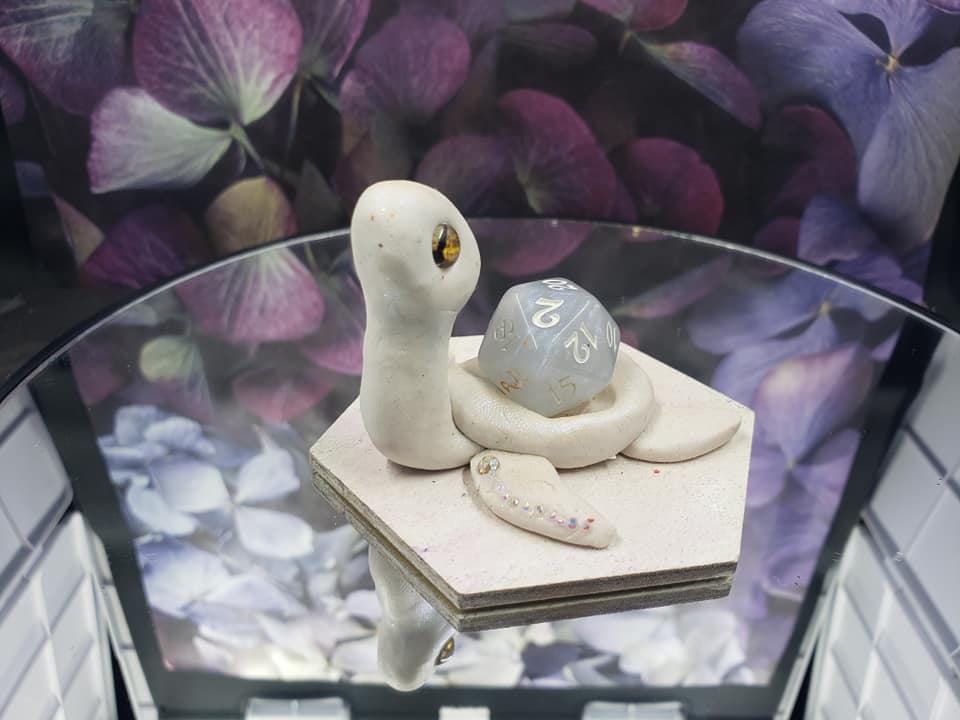 All my dice guardians are hand sculpted, hand painted, and no two are ever alike~and as always, each guardian is custom made to match its dice! No dice are baked with their guardians however, so you don't have to worry about your rolls being off!