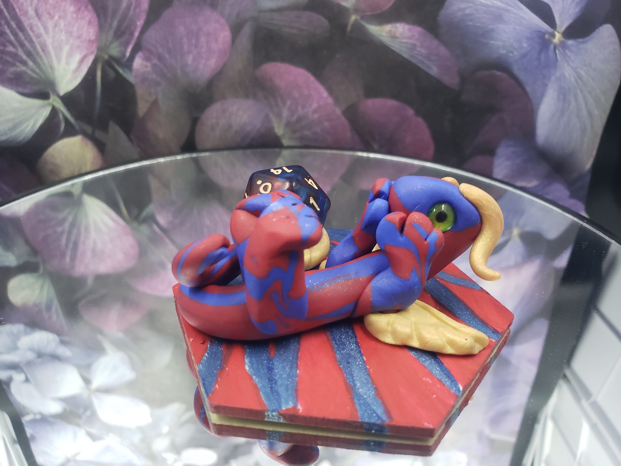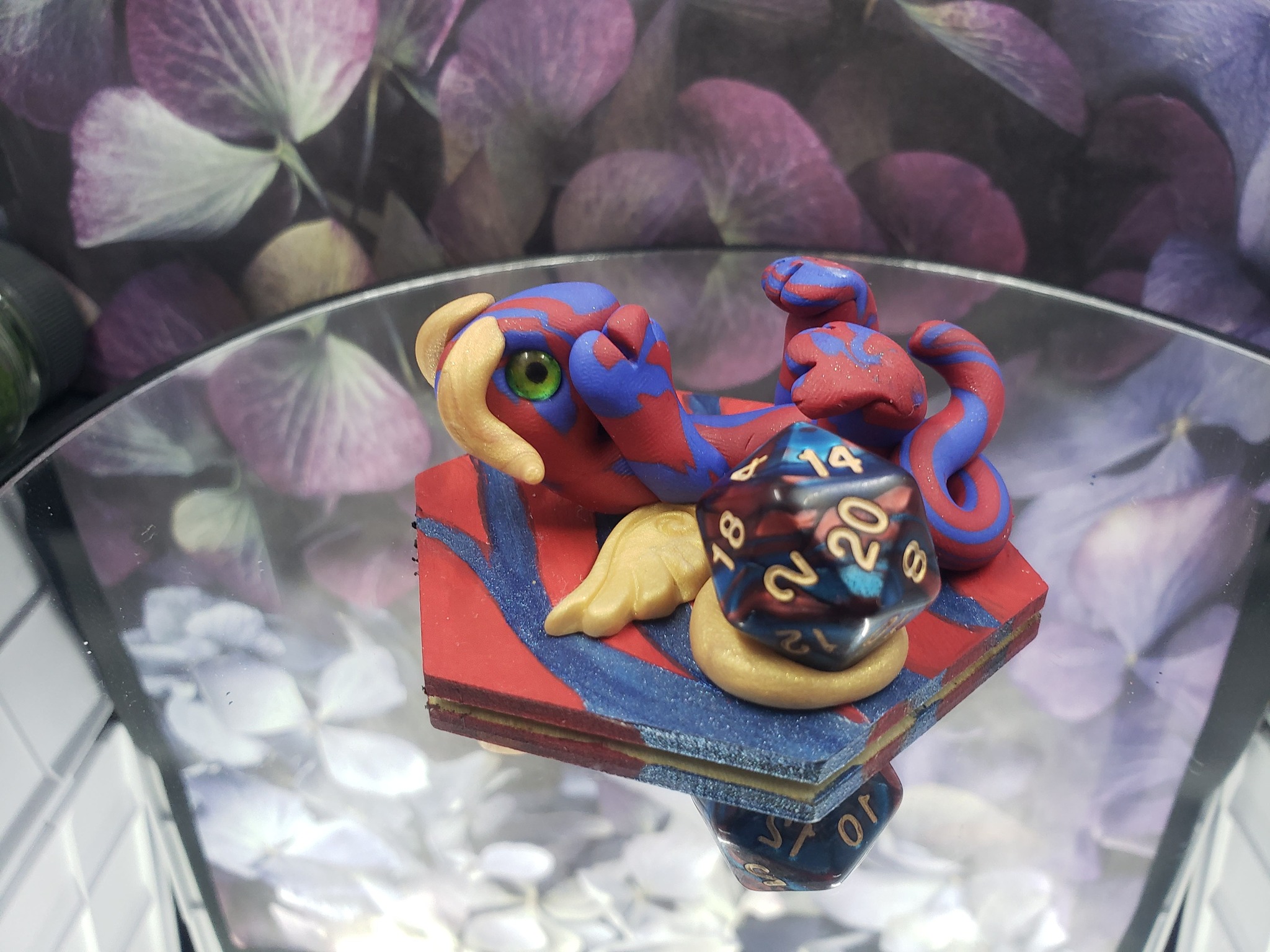 All my dice guardians are hand sculpted, hand painted, and no two are ever alike~and as always, each guardian is custom made to match its dice! No dice are baked with their guardians however, so you don't have to worry about your rolls being off!