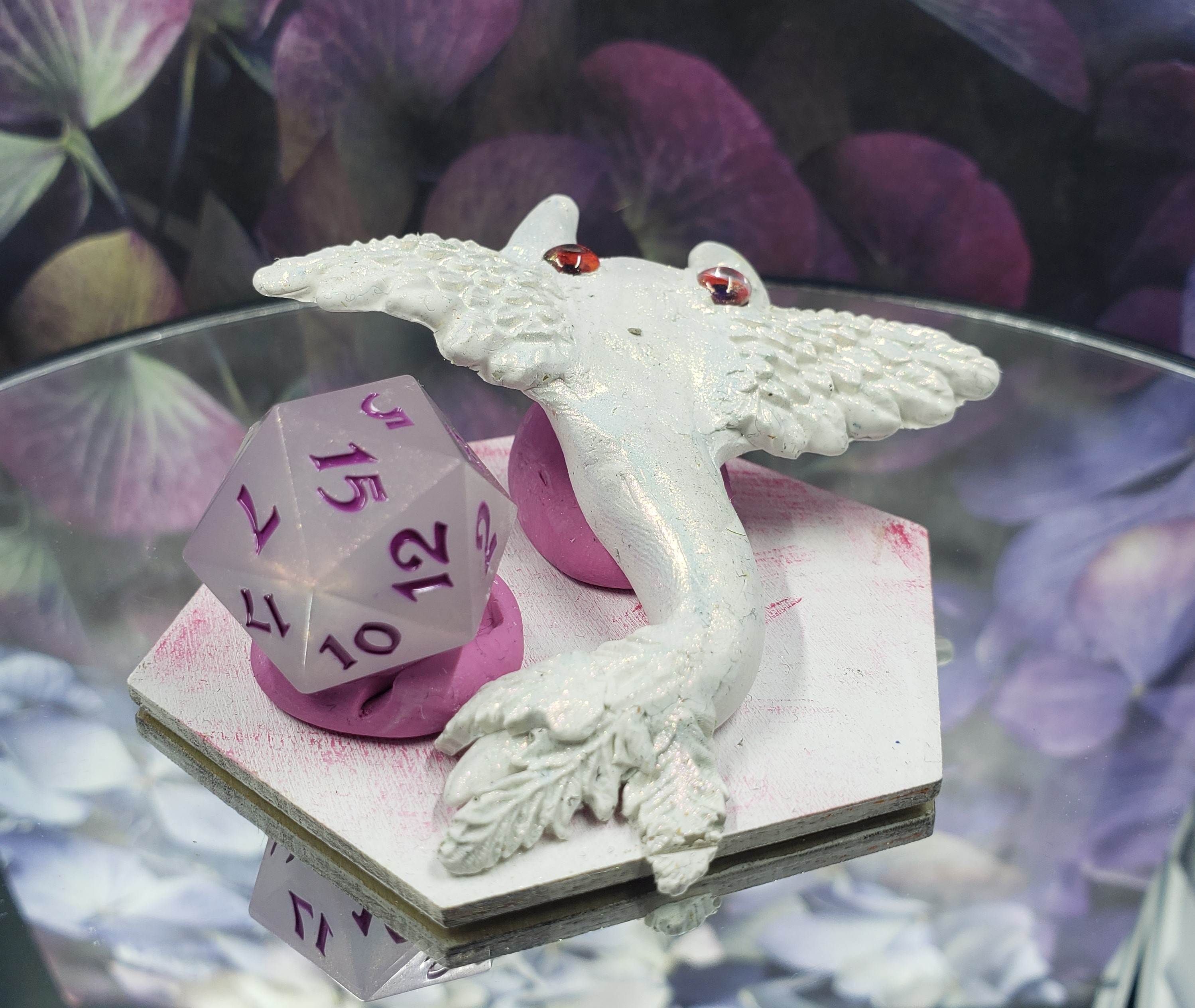 All my dice guardians are hand sculpted, hand painted, and no two are ever alike~and as always, each guardian is custom made to match its dice! No dice are baked with their guardians however, so you don't have to worry about your rolls being off!